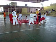 A Escolinha de Tae Kwon Do da Secretaria Municipal de Cultura e Esportes de Morretes recebe a primeira parte de um tatame para treinamento de seus alunos, que recebem treinamento gratuito no Ginásio de Esportes Luiz Ciroldo Tonetti.